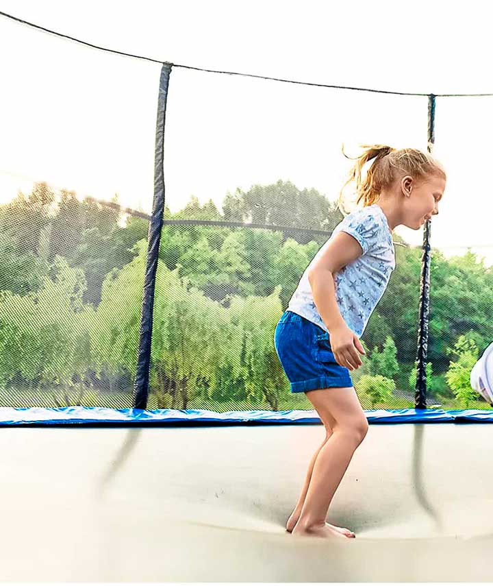 Плотное защитное покрытие полностью закрывает пружины и каркас рамы батута, предостерегает от травм и предотвращает проникновение влаги на пружинный механизм.